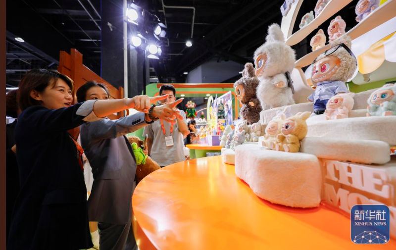 9月10日,观众在服贸会主题展区泡泡玛特展台前参观。新华社记者 常能嘉 摄
