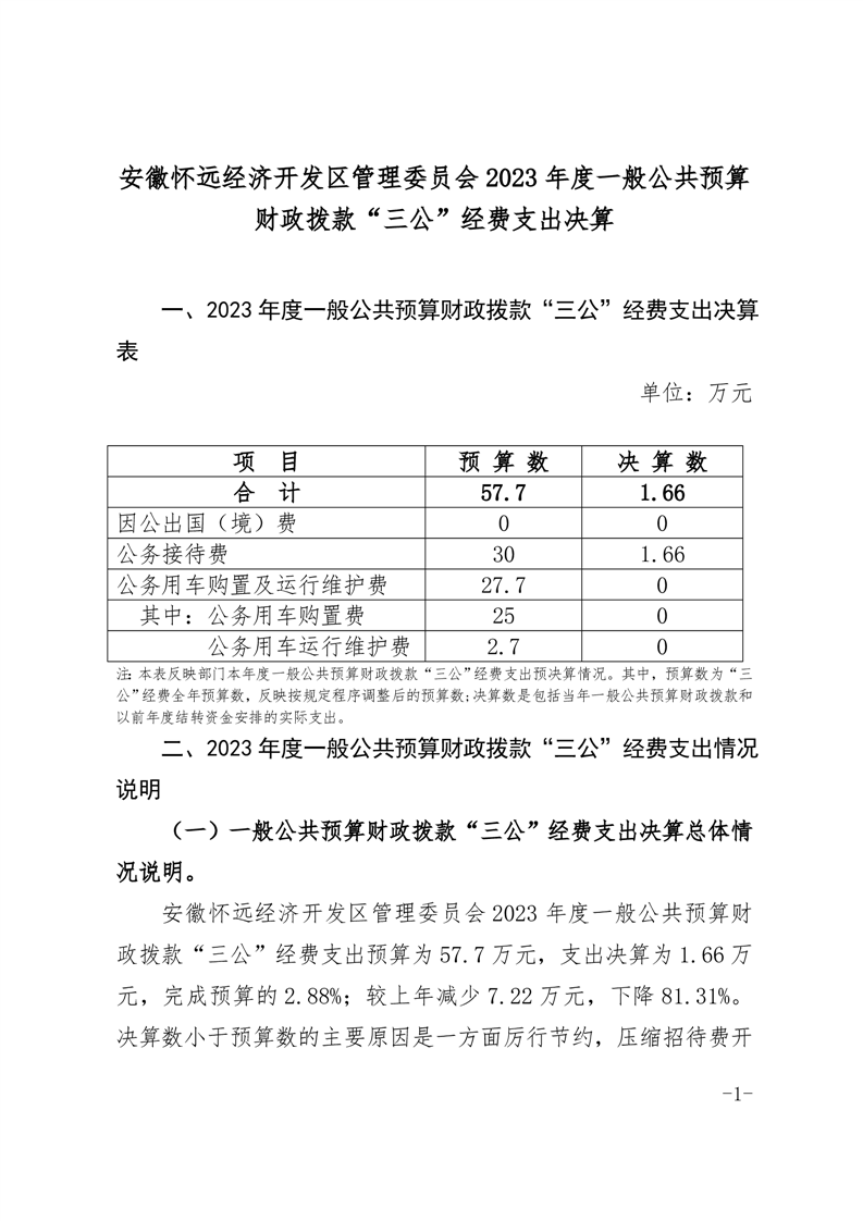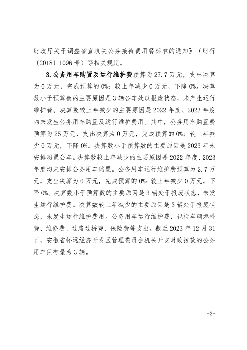 2023年怀远经济开发区管理委员会“三公经费”公开
