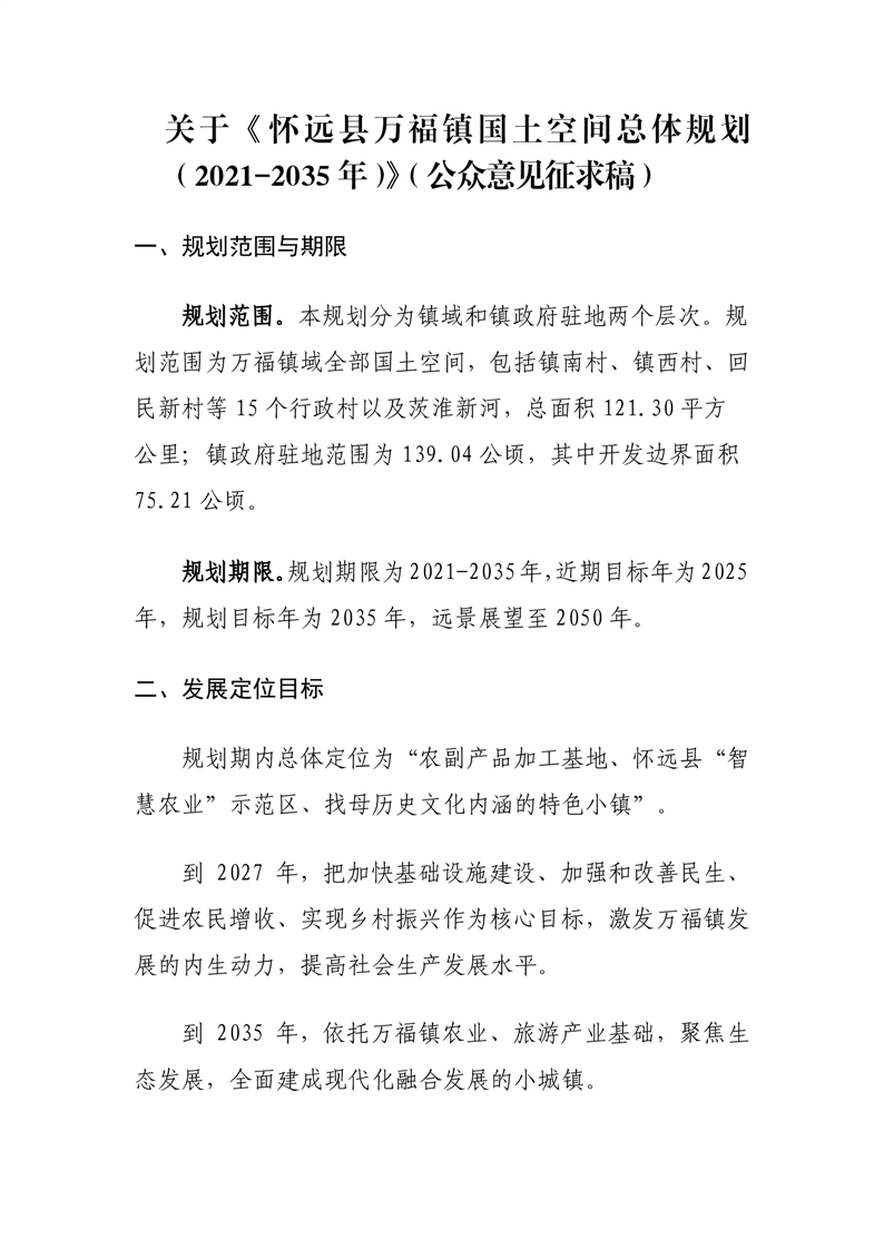关于《怀远县万福镇国土空间总体规划(2021-2035年)》(公众意见征求稿)