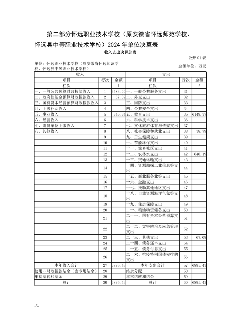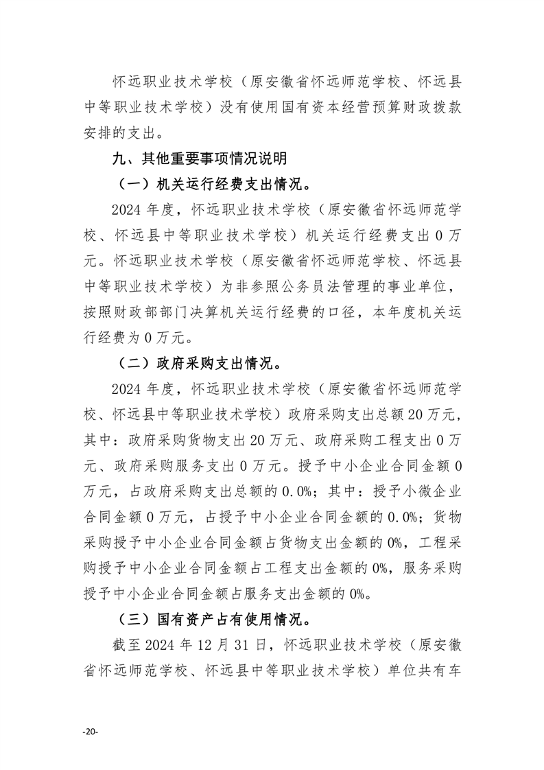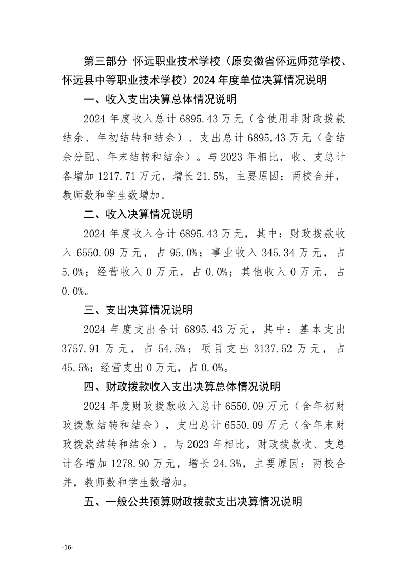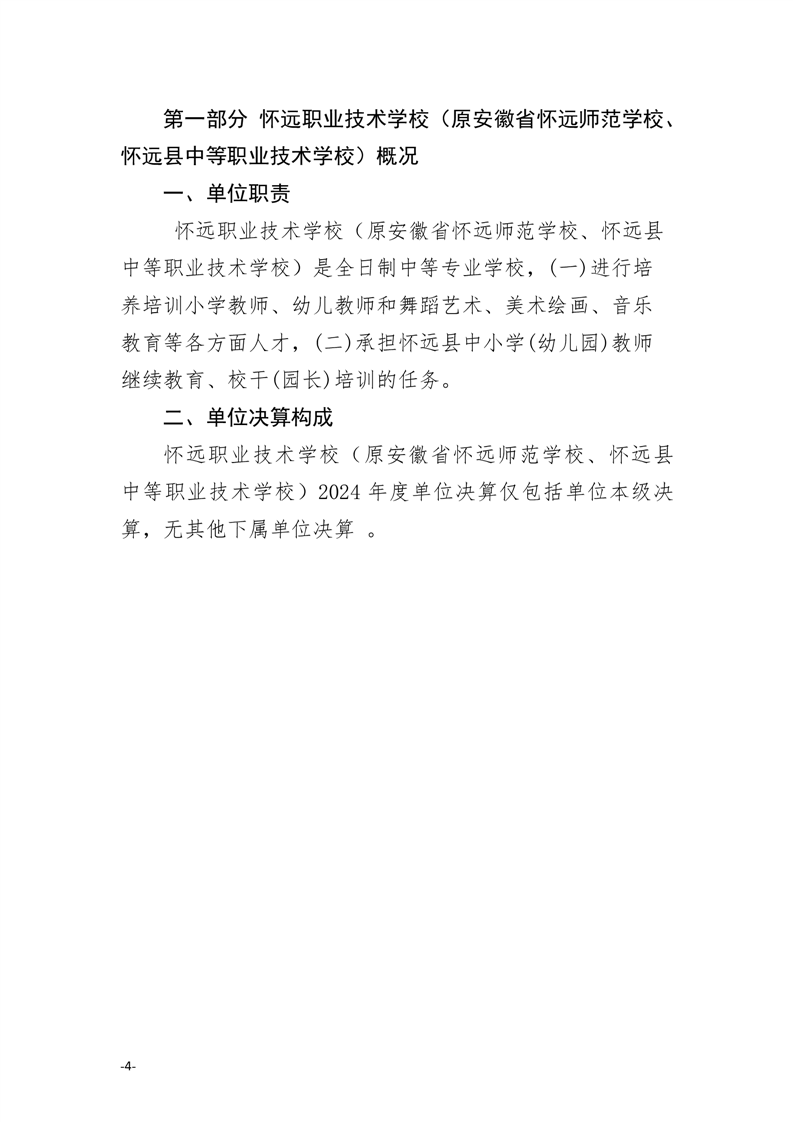 怀远县教育局怀远职业技术学校(原安徽怀远师范学校、怀远县中等职业技术学校)2024年度单位决算