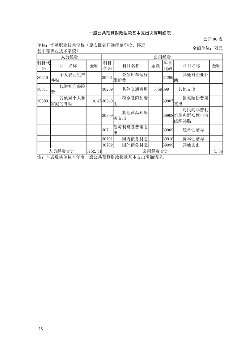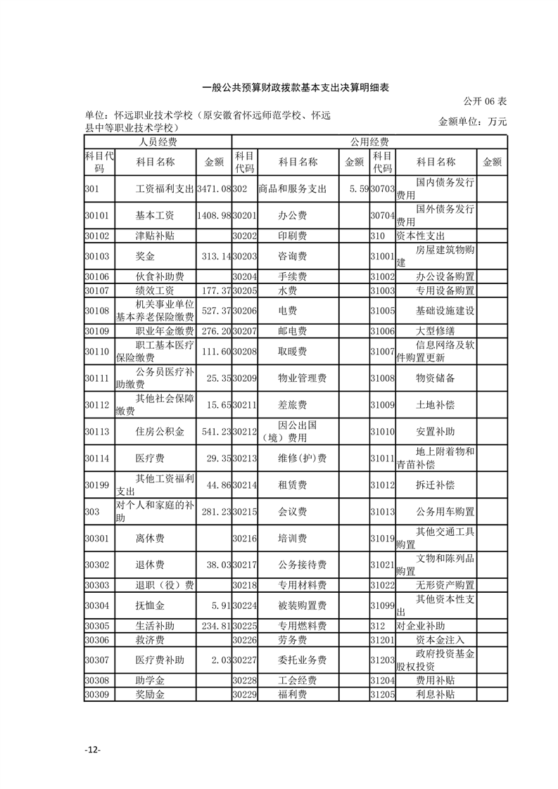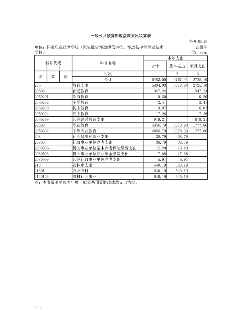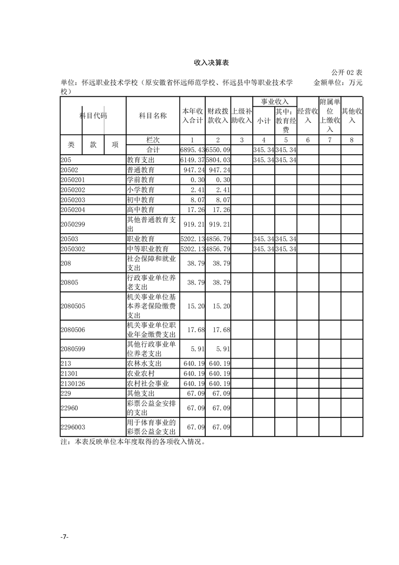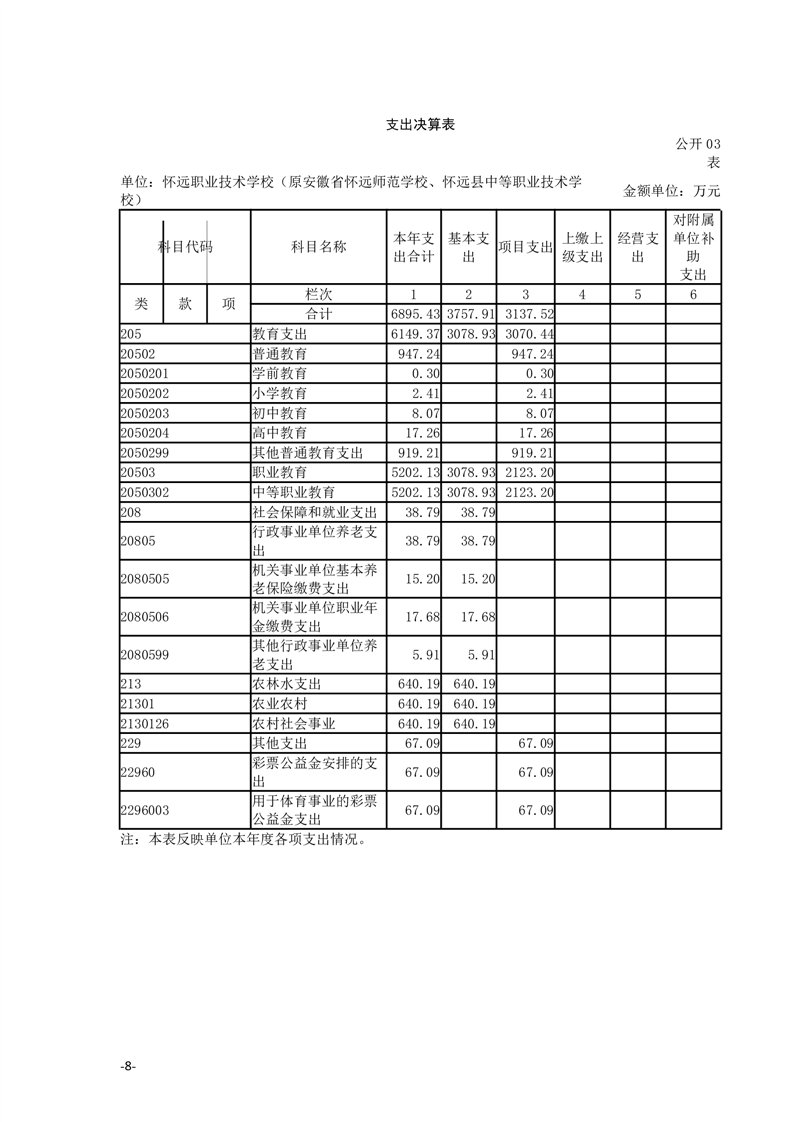 怀远县教育局怀远职业技术学校(原安徽怀远师范学校、怀远县中等职业技术学校)2024年度单位决算