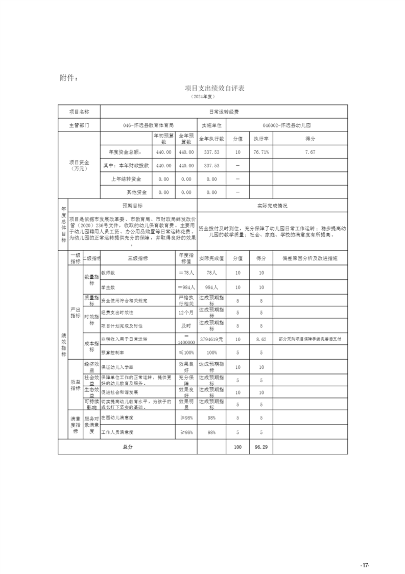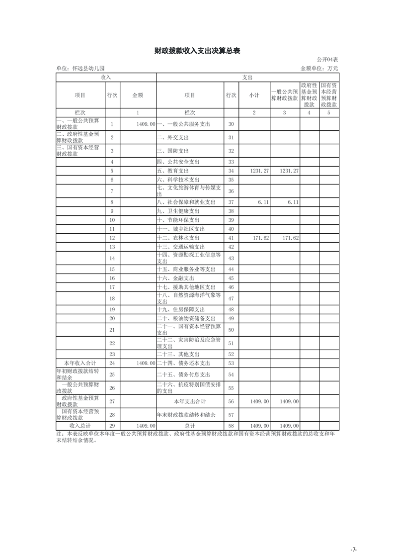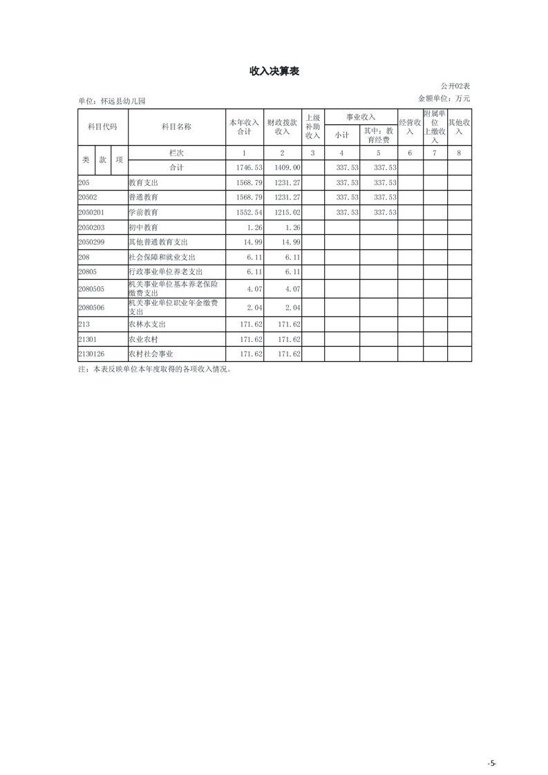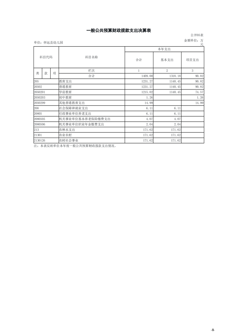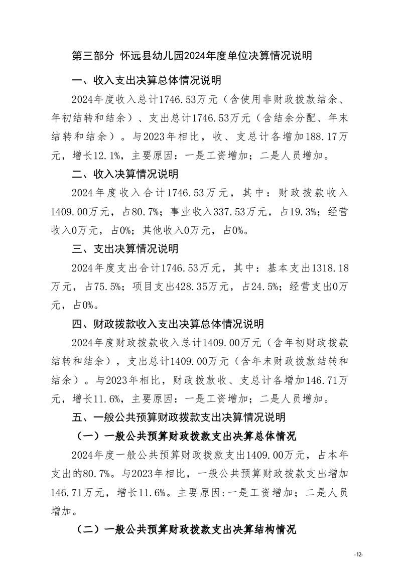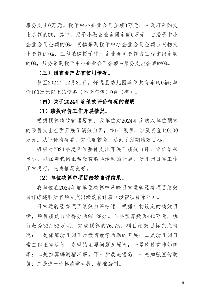 怀远县教育局怀远县幼儿园2024年度单位决算 |