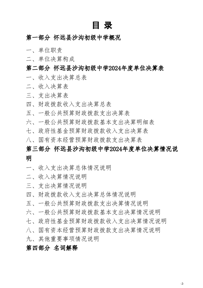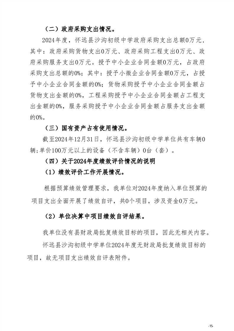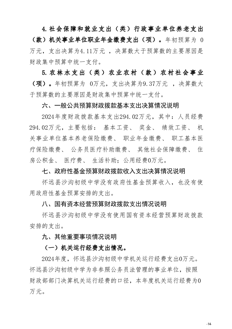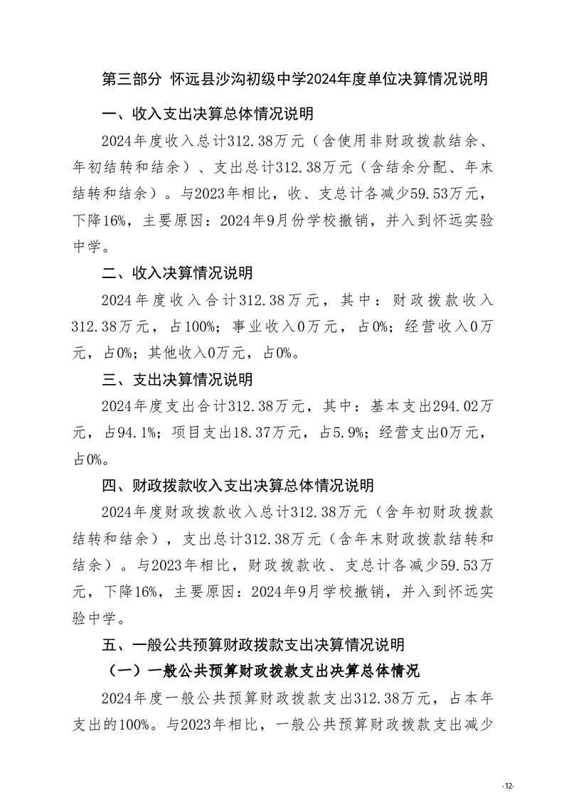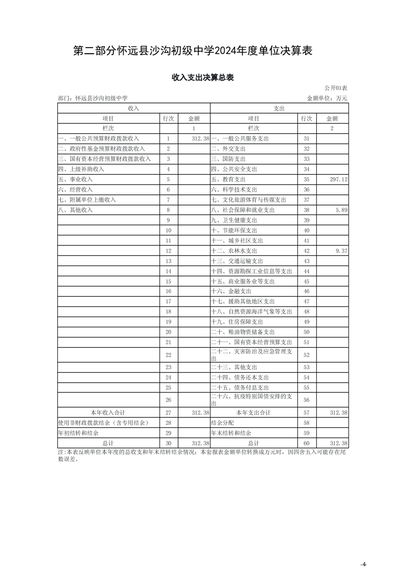 怀远县教育局怀远县沙沟初级中学2024年度单位决算