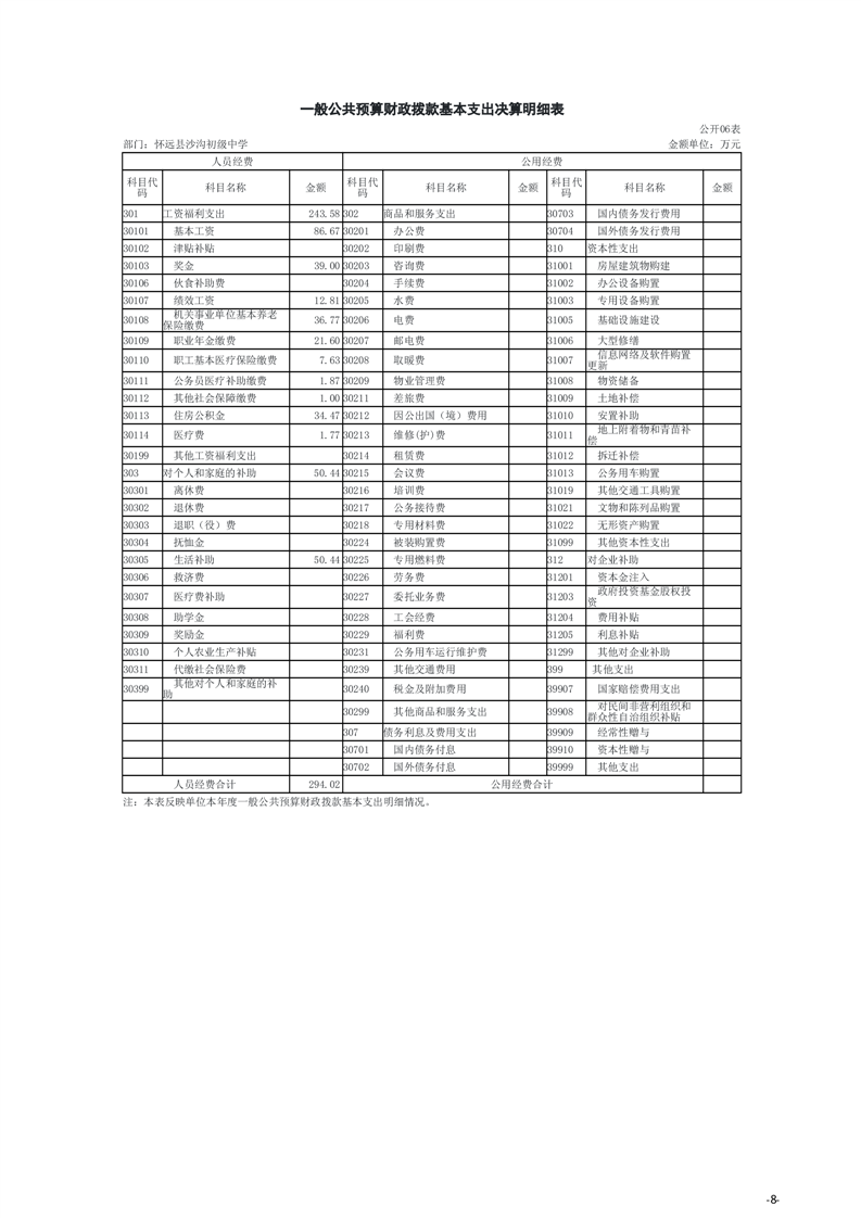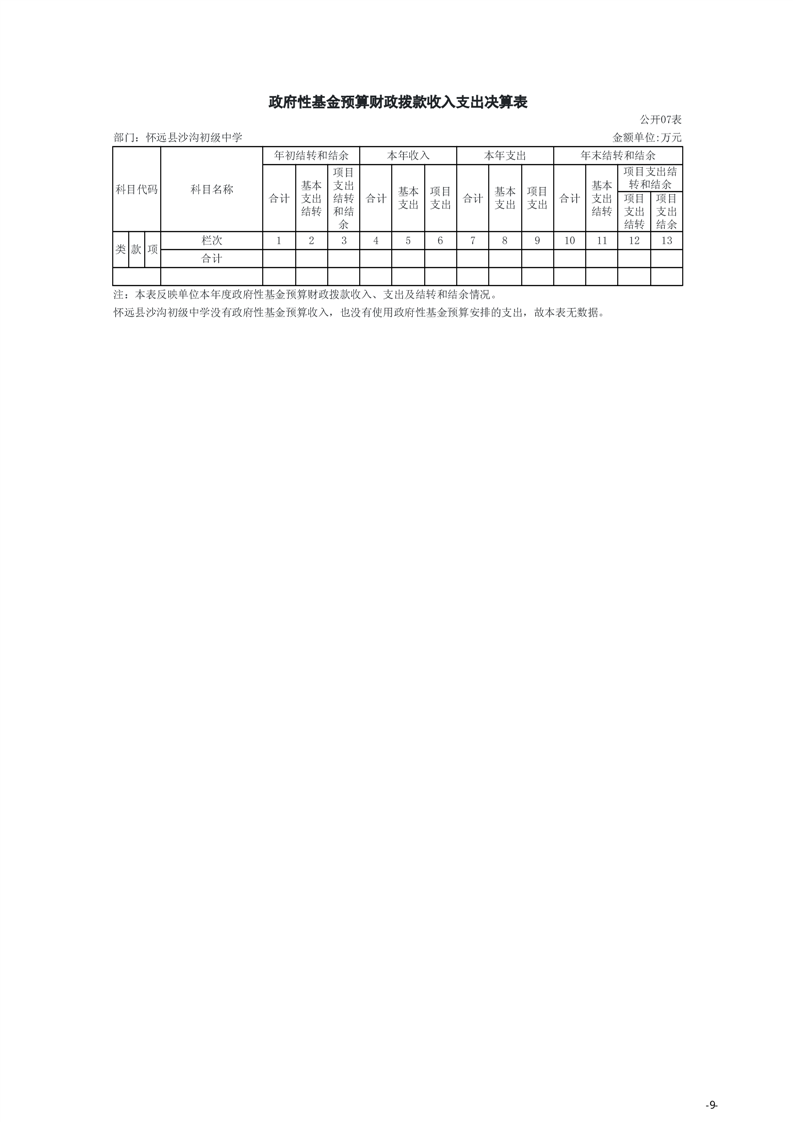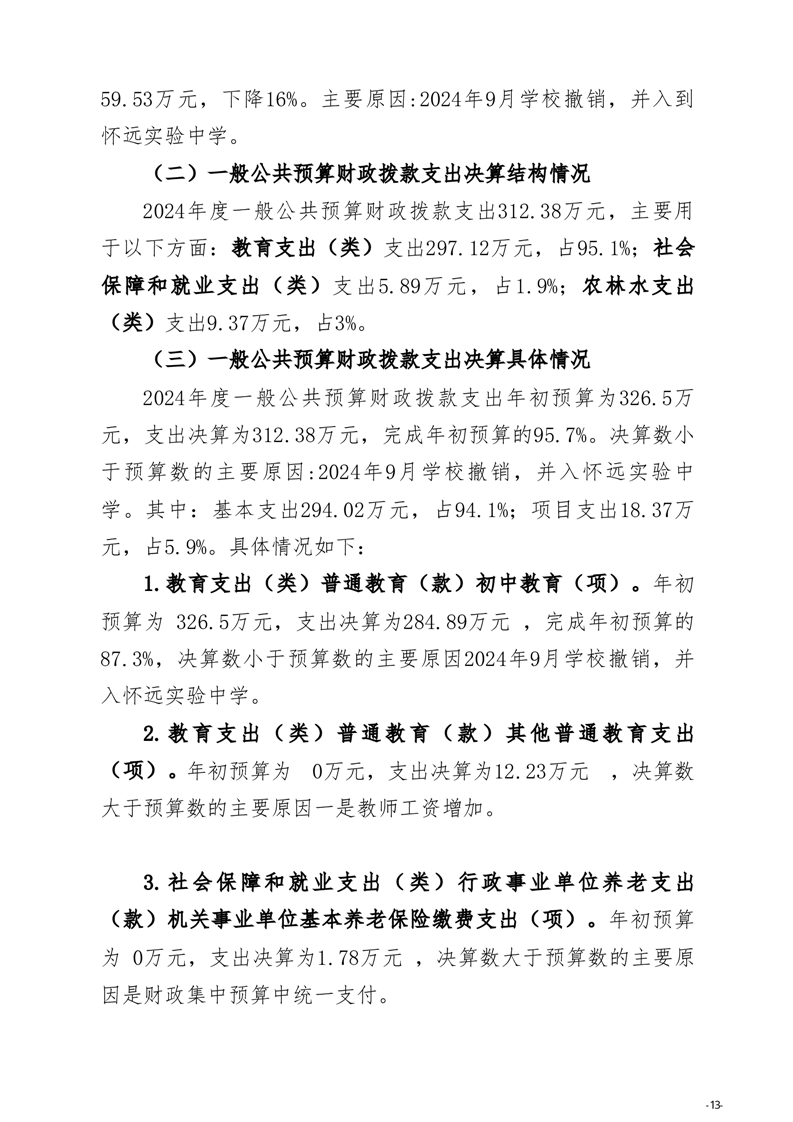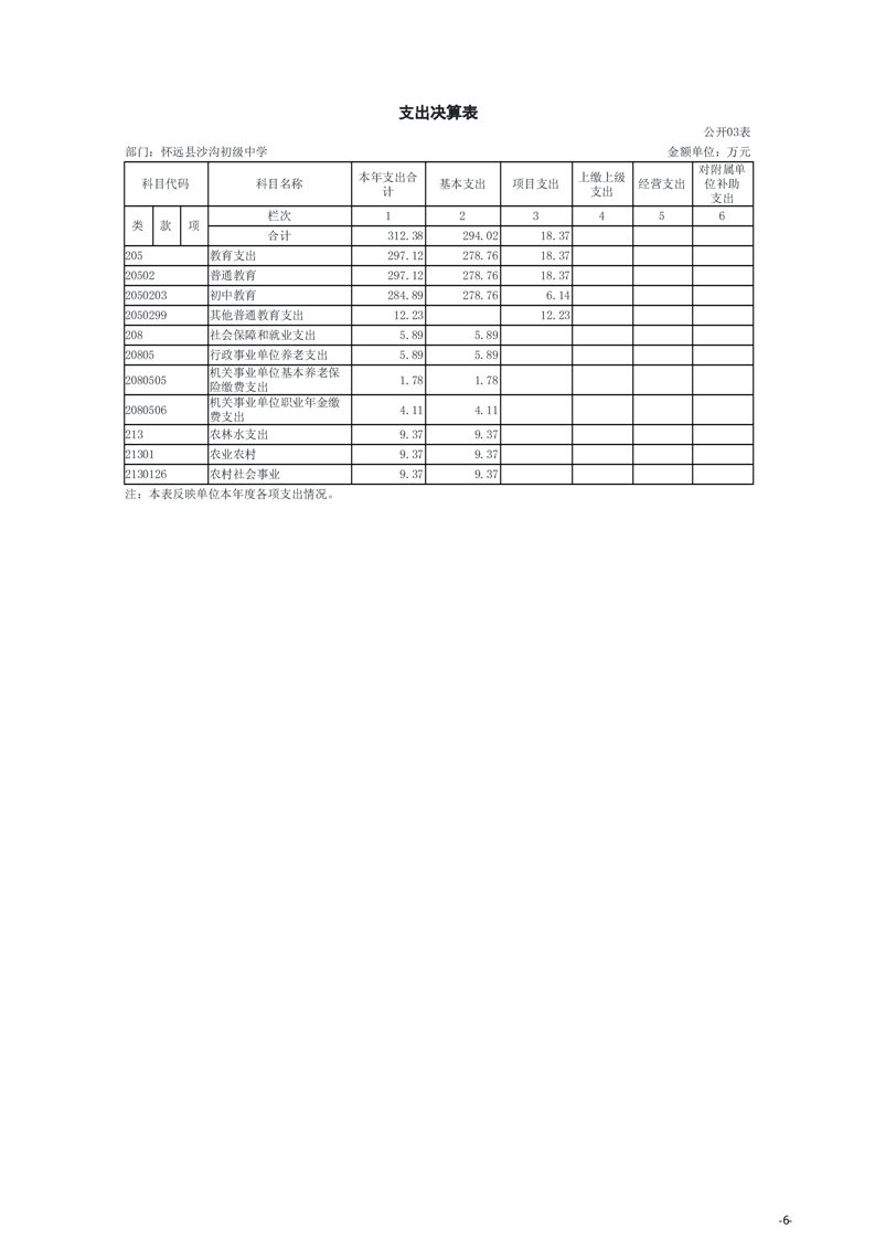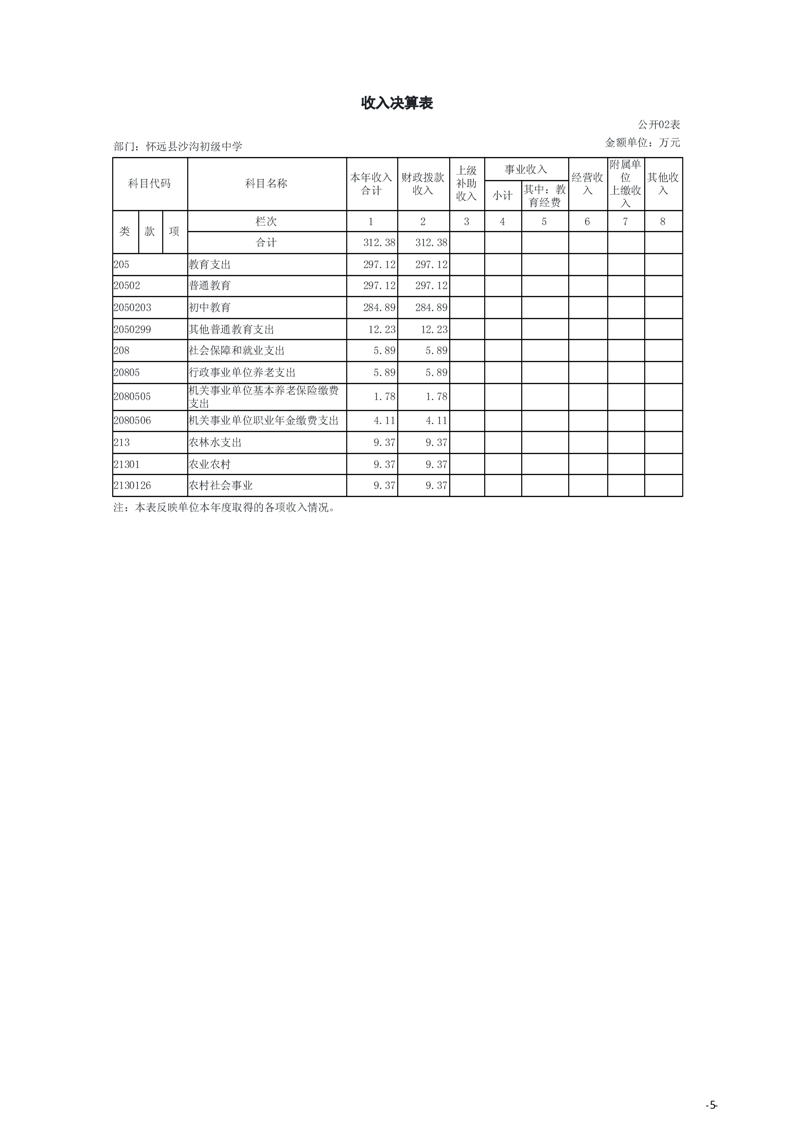 怀远县教育局怀远县沙沟初级中学2024年度单位决算