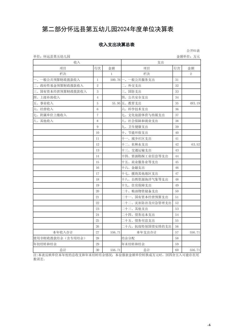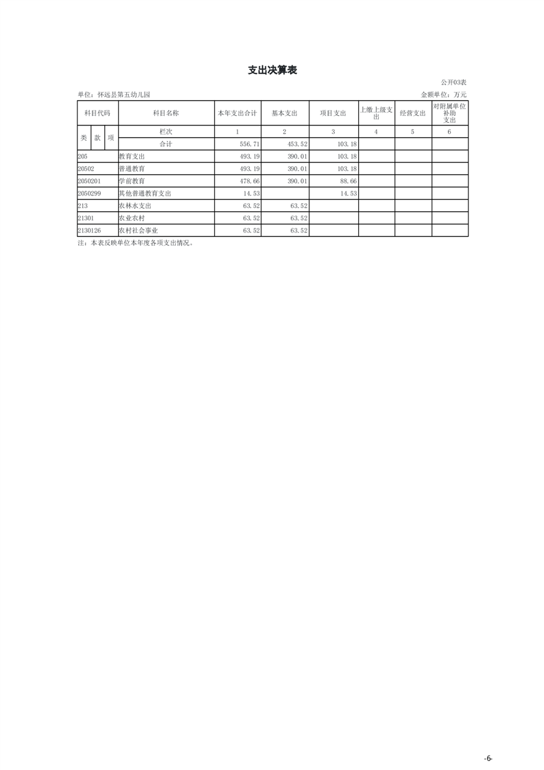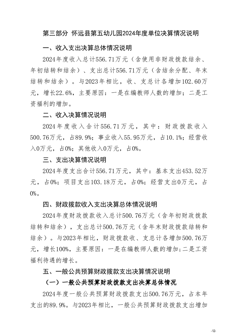 怀远县教育局怀远县第五幼儿园2024年度单位决算 |