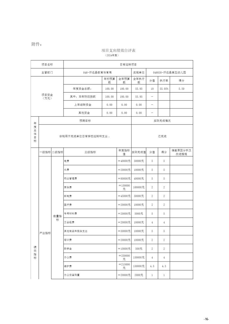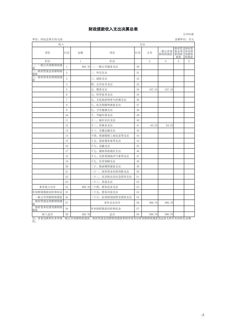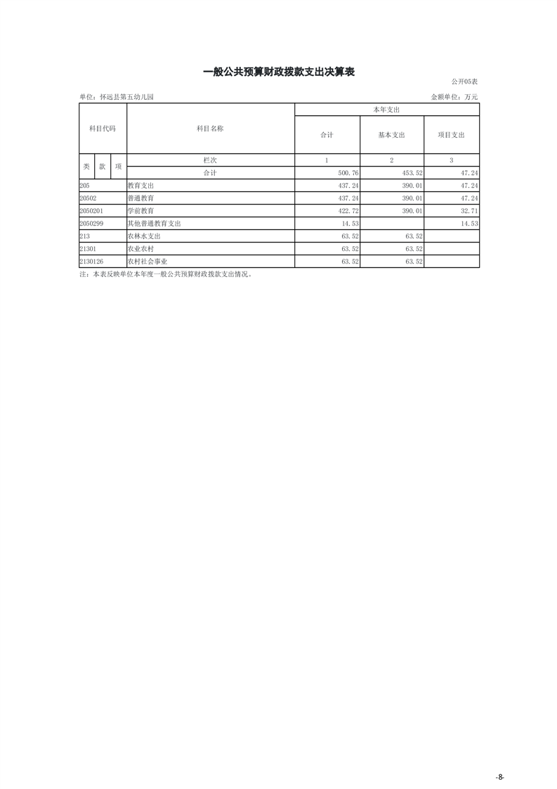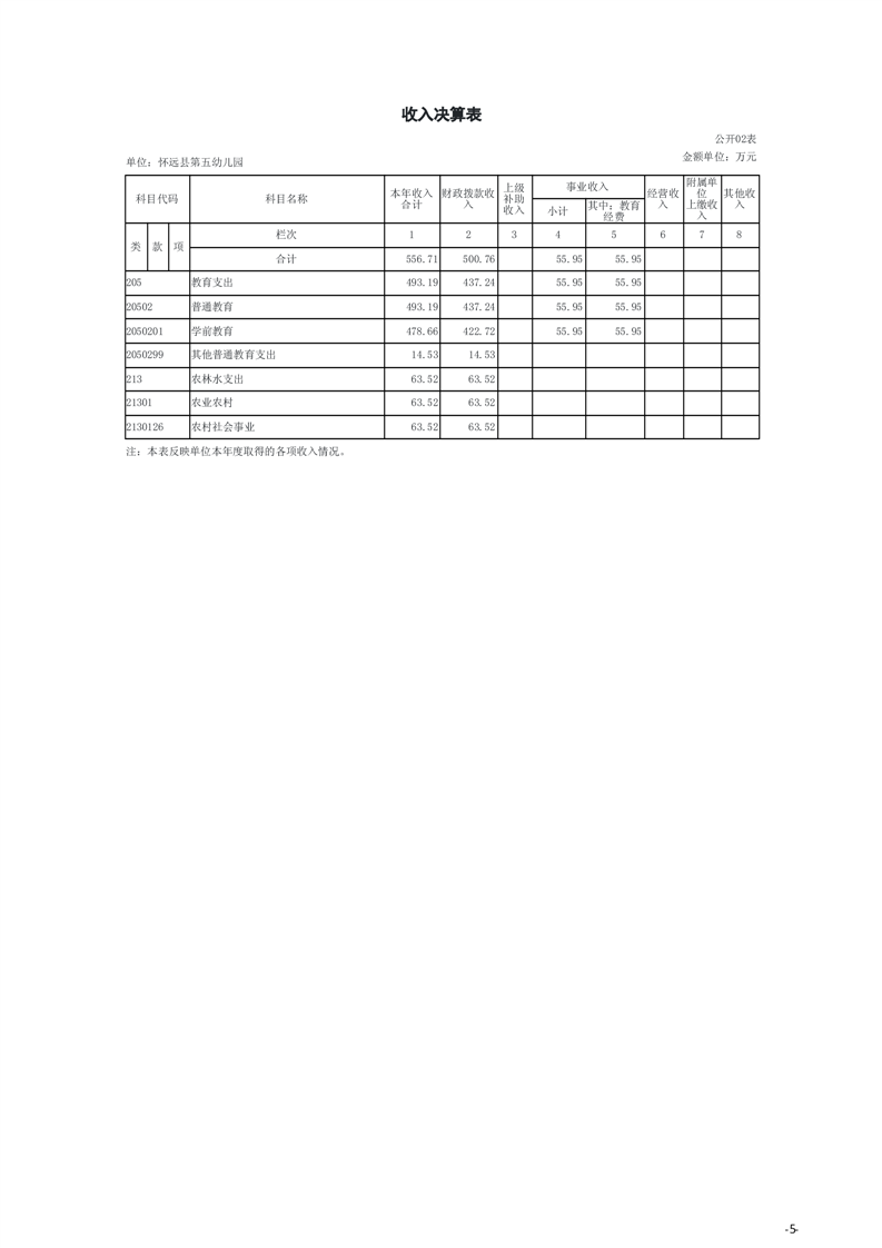 怀远县教育局怀远县第五幼儿园2024年度单位决算 |