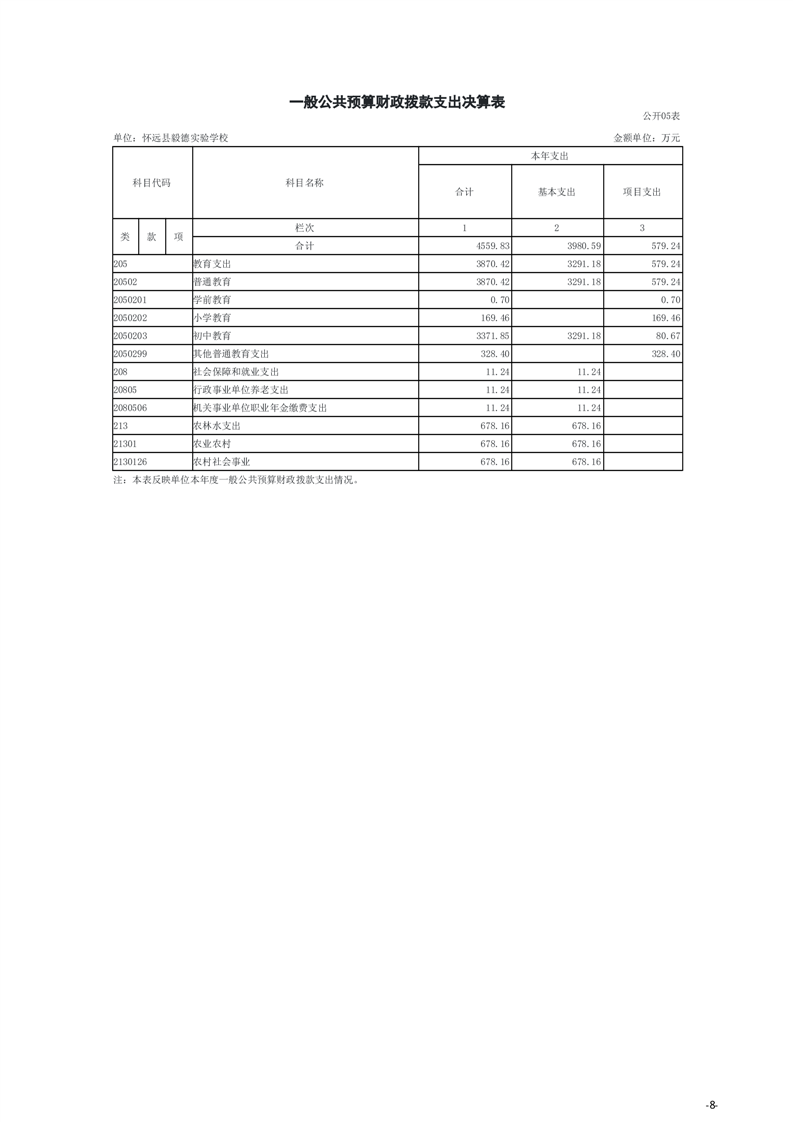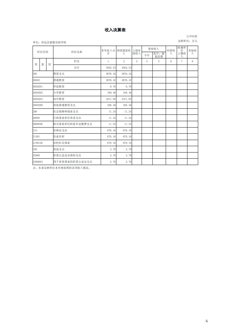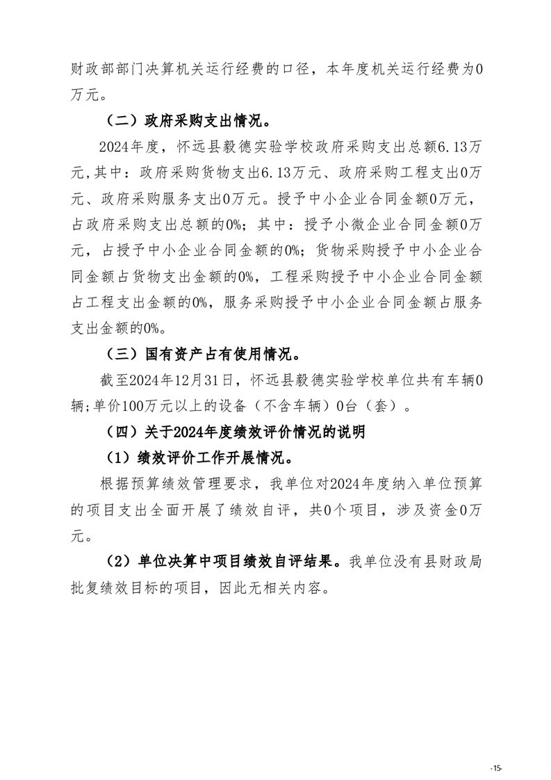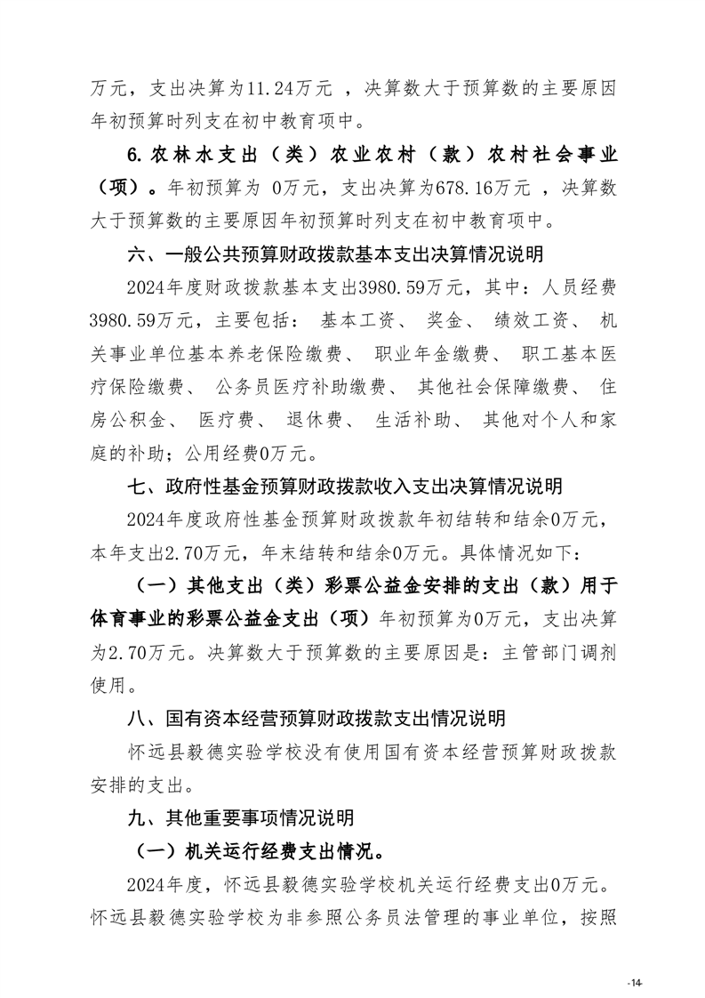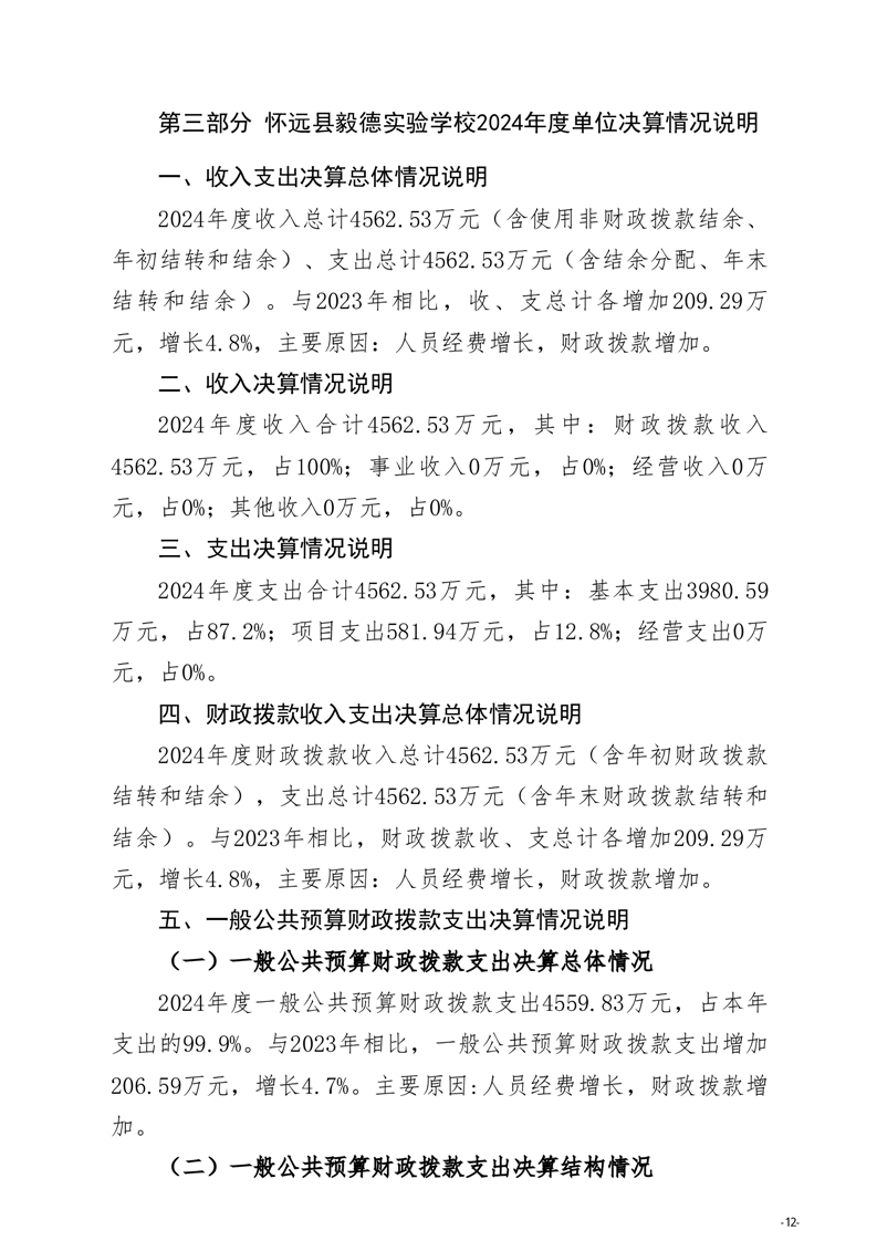 怀远县教育局怀远县毅德实验学校2024年度单位决算