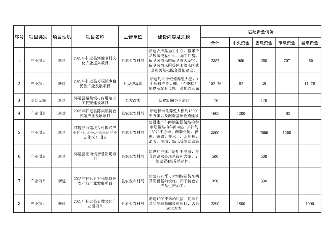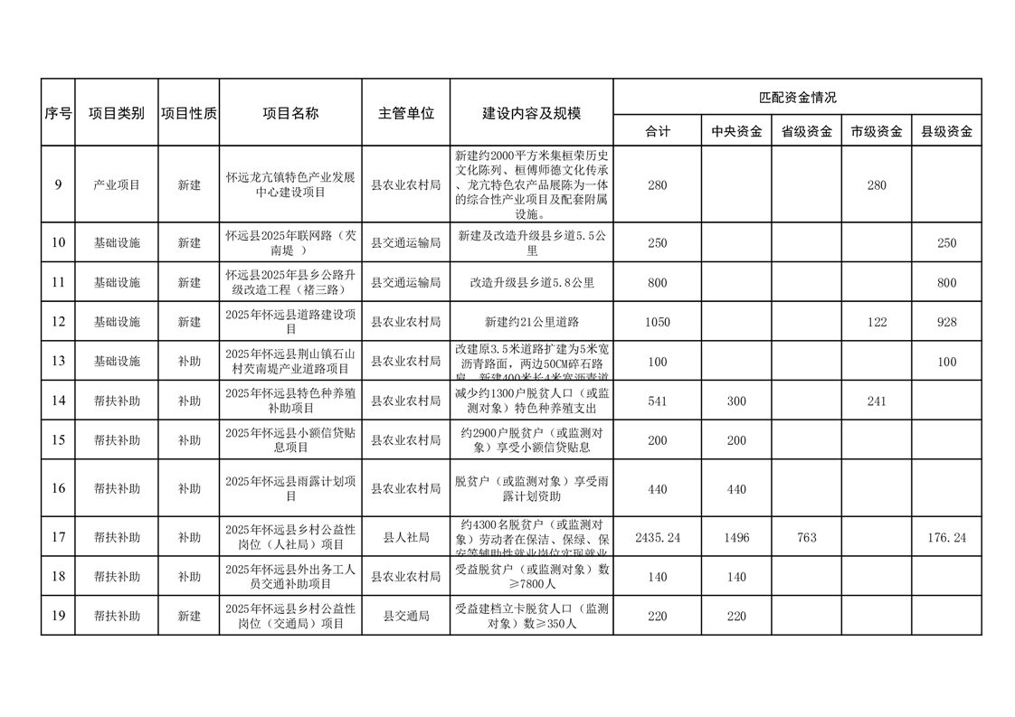 关于2025年衔接资金项目计划表