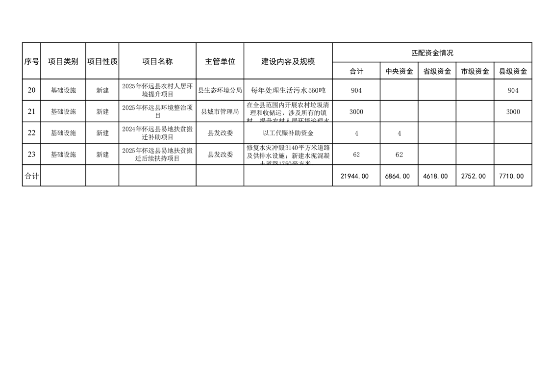 衔接资金项目计划